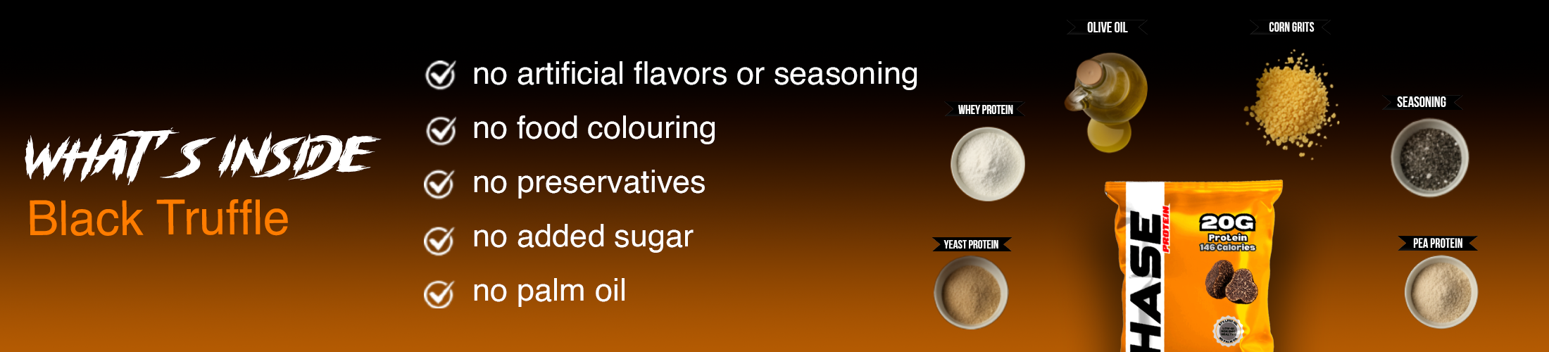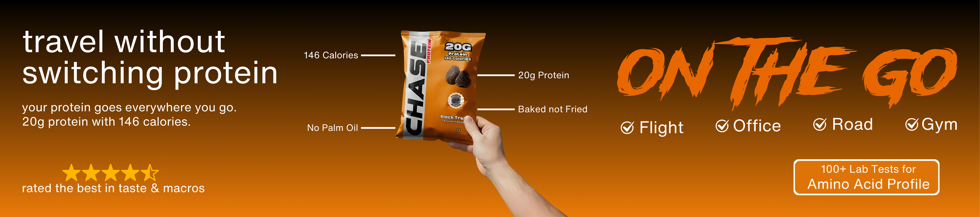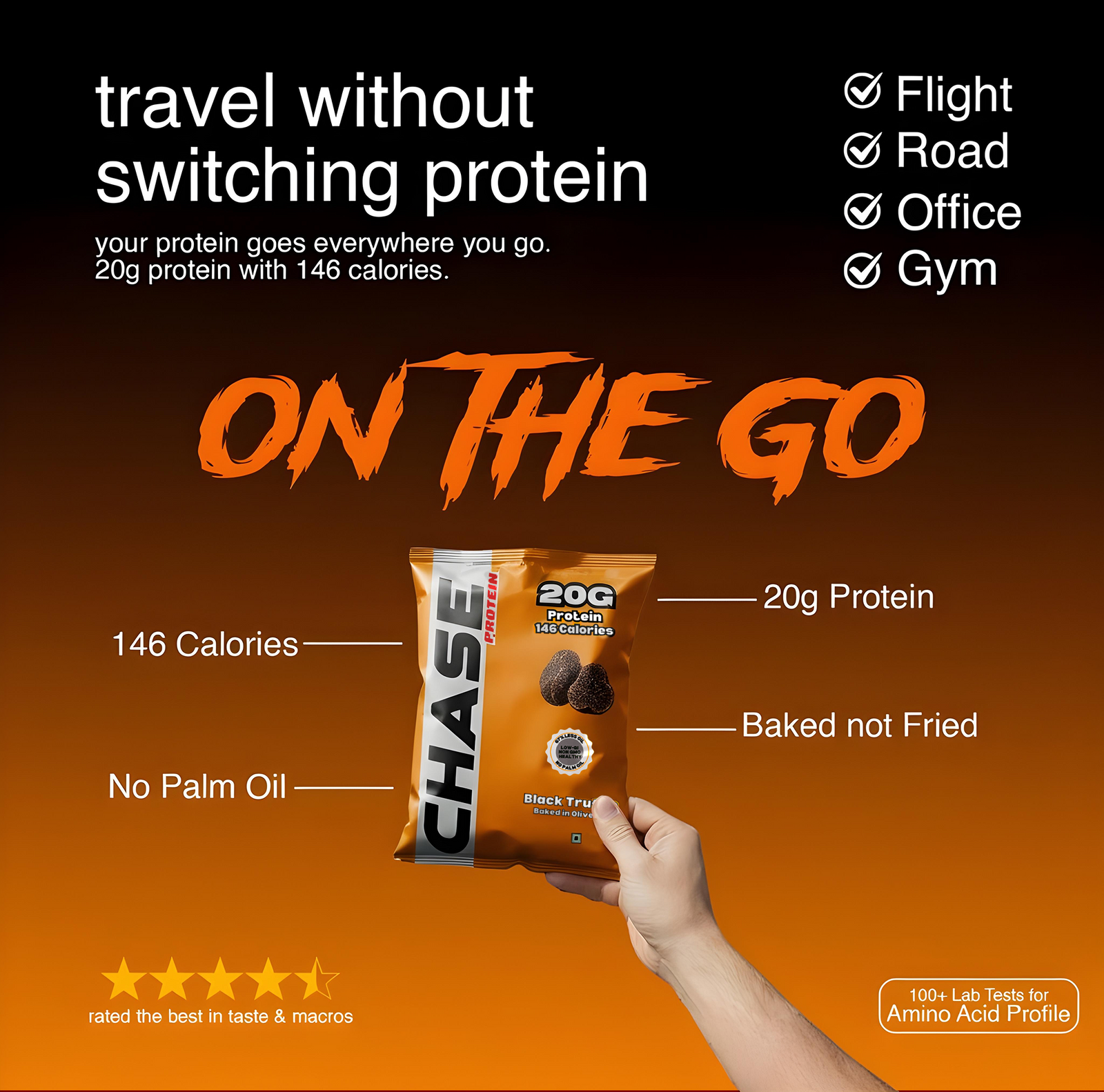 Chase Protein Kurkure (Truffle) bring together bold flavor and powerful nutrition, packing 20g of high-quality whey protein isolate in every pack to fuel muscle gain, recovery, and fitness goals. Baked in olive oil for a light, crispy crunch—not fried—these protein Kurkure are a clean, low-calorie alternative to unhealthy snacks. Made with the spicy, aromatic blend of Indian masala, they deliver a zesty, mouth-watering taste that makes healthy snacking exciting. With added fiber to curb hunger, aid digestion, and keep you fuller for longer, these protein-rich Kurkure are perfect for gym-goers, athletes, busy professionals, or anyone looking for a wholesome pre- or post-workout snack that fits seamlessly into an active lifestyle.